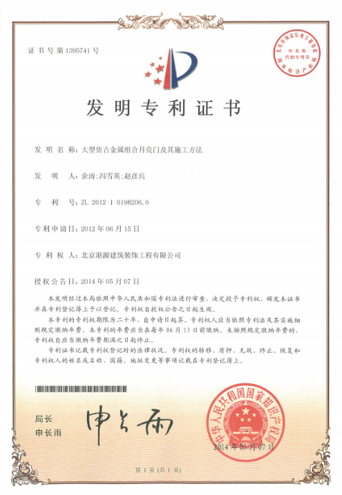 發(fā)明專(zhuān)利-大型仿古金屬組合月亮門(mén)及其施工方法